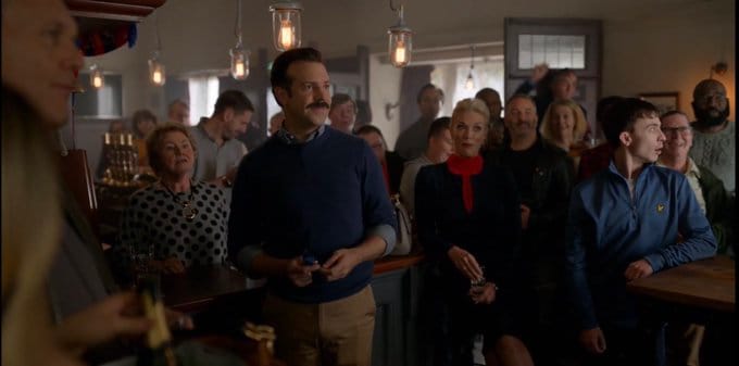 Ted Lasso (played by Jason Sudeikis) during the “darts scene”
